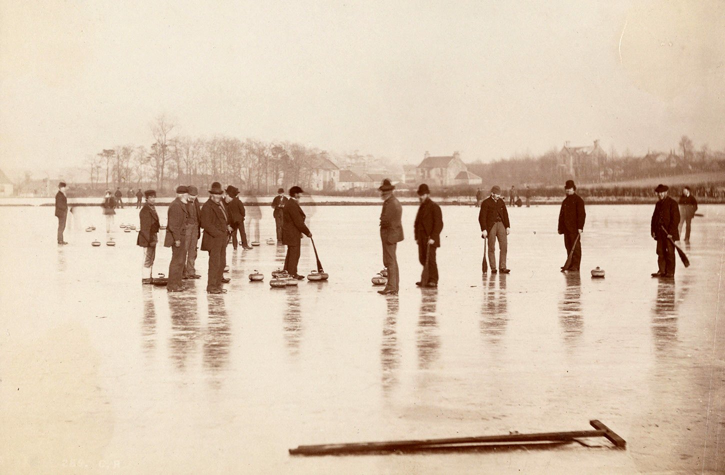 Σκωτσέζοι σε αγώνα curling τη δεκαετία του 1880 πάνω σε παγωμένη λίμνη κάπου στη Σκωτία. Φωτογραφία του Σκωτσέζου φωτογράφου Charles Reid. © PIEMAG/GB24/Alamy/Visualhellas.gr