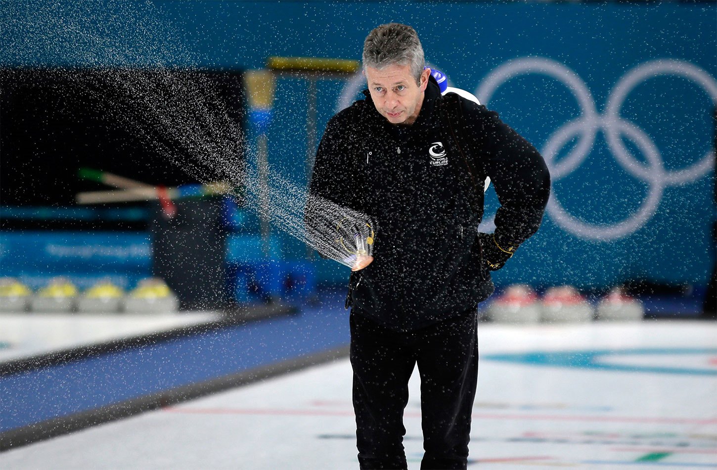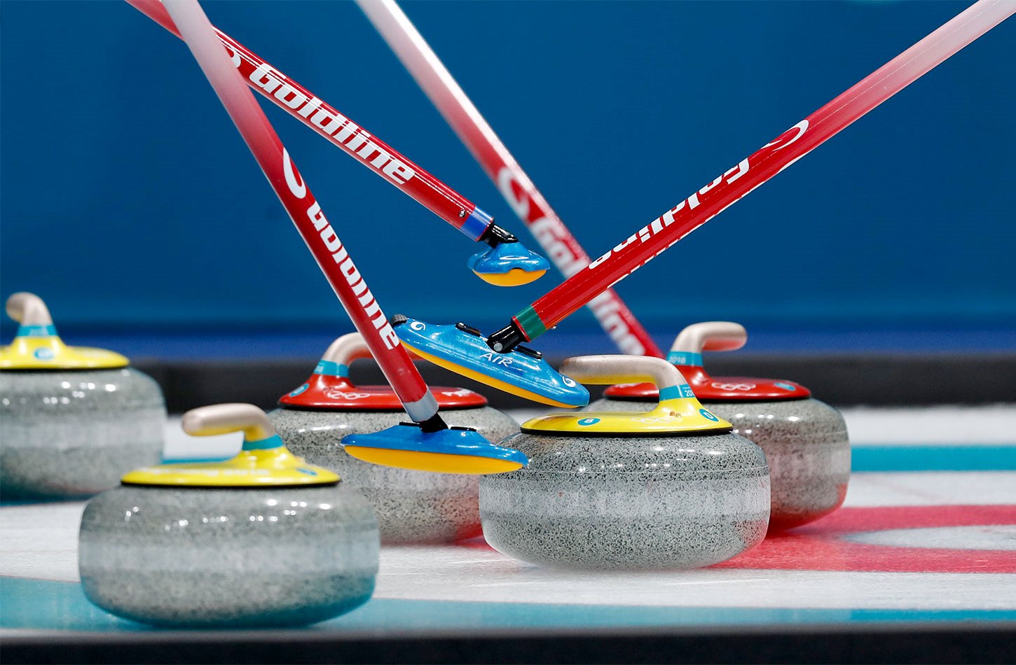 Βούρτσες, πέτρες και πάγος, οι πρωταγωνιστές του curling. © AP Photo/Bernat Armangue
