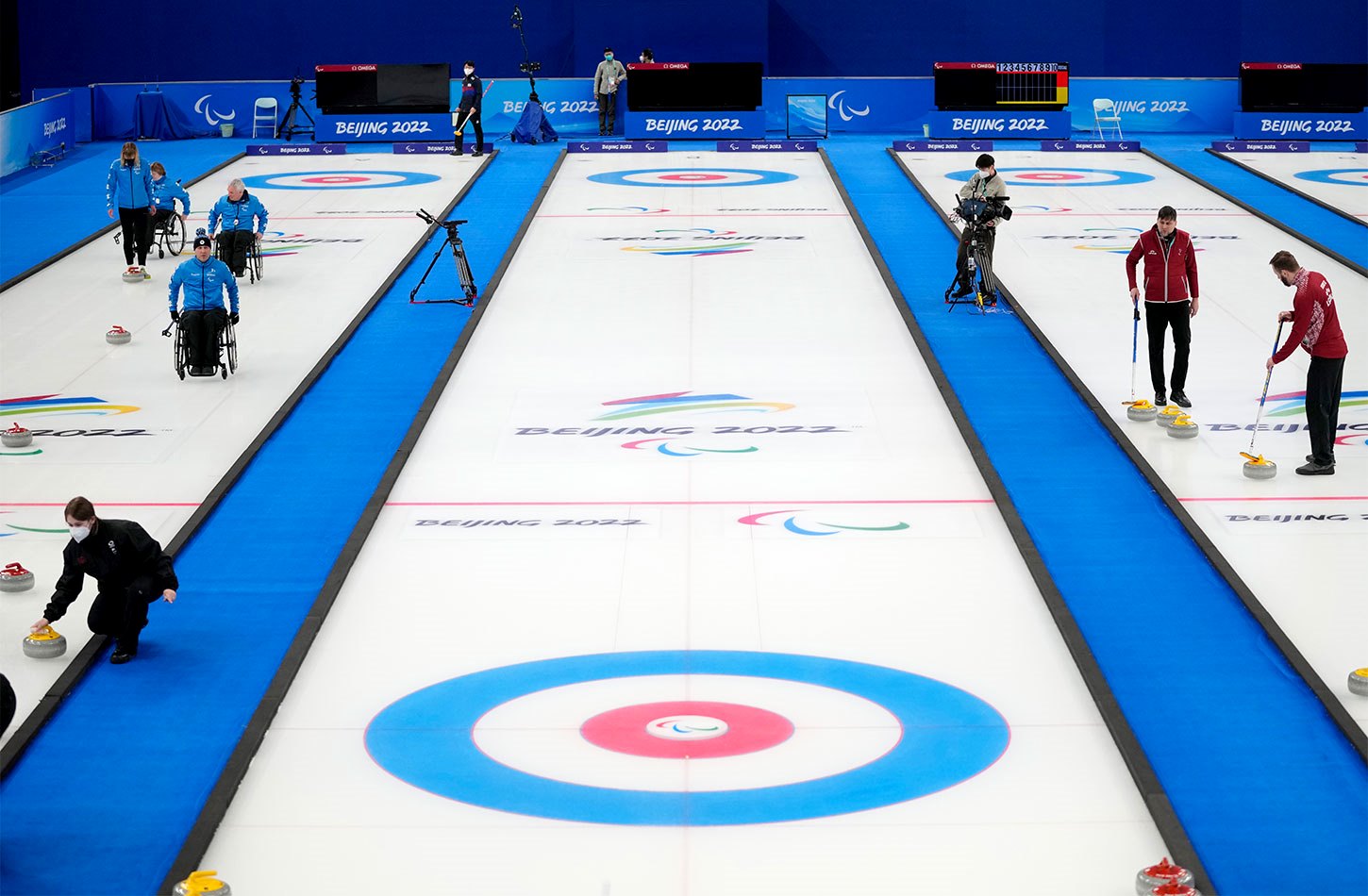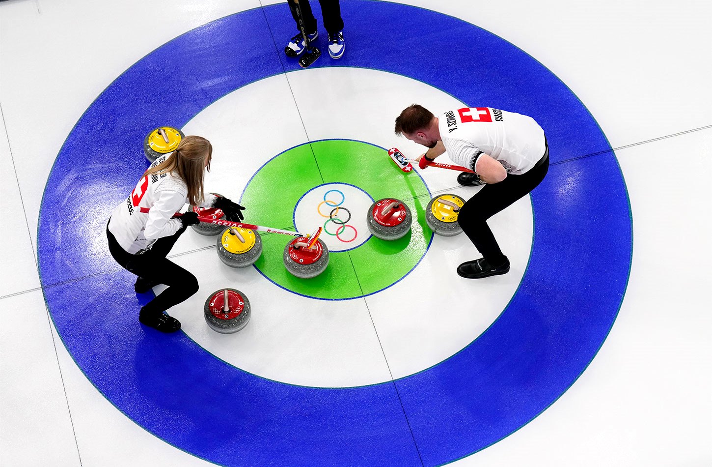 Τα αγωνίσματα του curling φιλοξενήθηκαν στους Χειμερινούς Ολυμπιακούς Αγώνες του 2022, στο περίφημο Water Cube του Πεκίνου. © AP Photo/Nariman El-Mofty