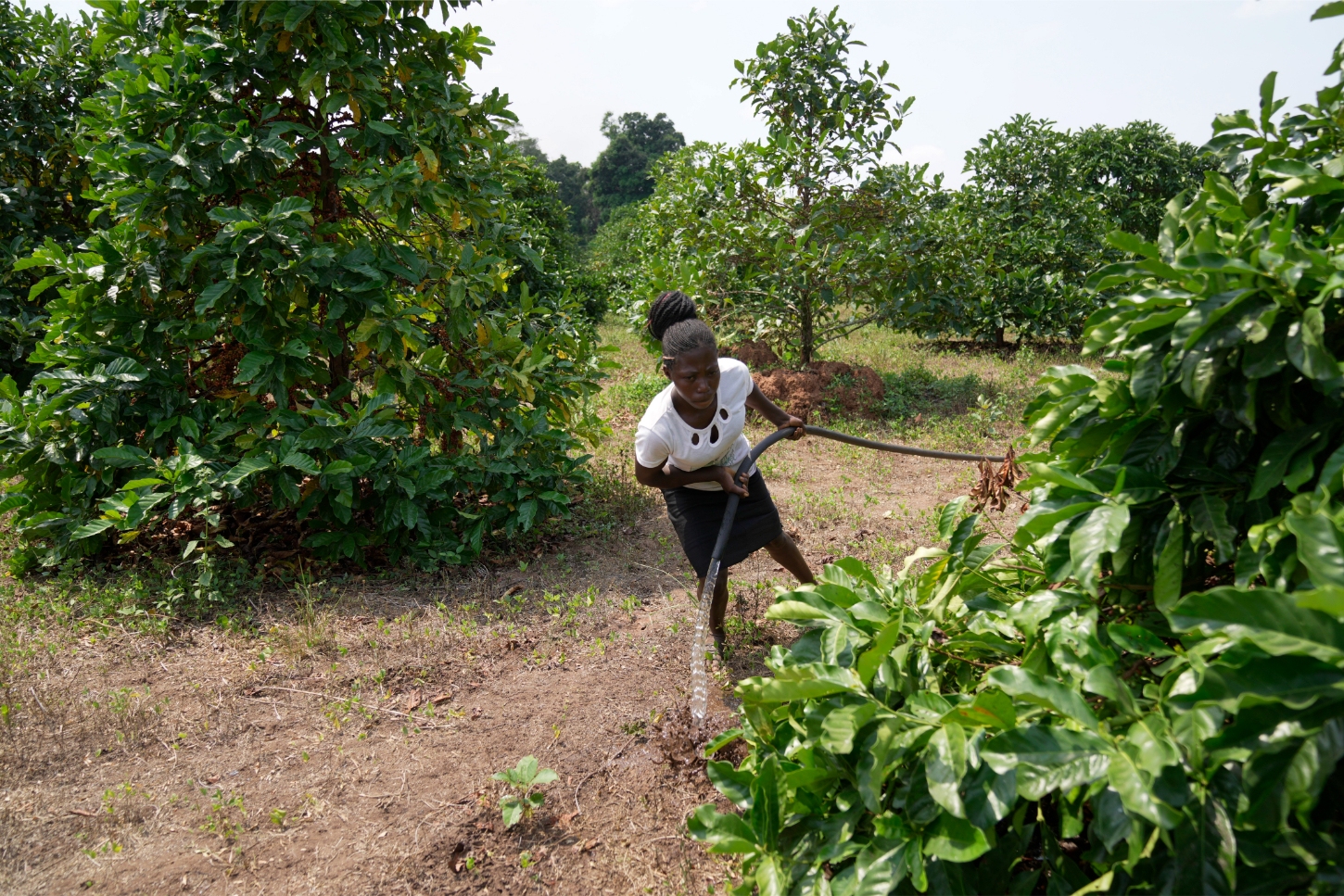Εκεί δραστηριοποιείται η εταιρεία Equatoria Teak, μια βιώσιμη επιχείρηση αγροδασοπονίας που δραστηριοποιείται για πάνω από μια δεκαετία στην περιοχή, εξετάζοντας τις δυνατότητες της ποικιλίας excelsa και στηρίζοντας παράλληλα την τοπική κοινωνία: παρέχει δέντρα και εκπαίδευση σε περίπου 1.500 άτομα από την τοπική κοινότητα, δίνοντάς τους τη δυνατότητα να πουλούν τους καρπούς που συλλέγουν πίσω στην εταιρεία, για επεξεργασία και εξαγωγή.
