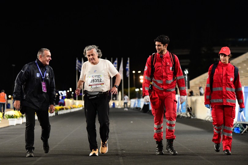 Έπειτα από σχεδόν οκτώ ώρες συνεχούς προσπάθειας, μπήκε στο εμβληματικό πέταλο στις 18:20 με όσους παρέμεναν στις θέσεις τους να του χαρίζουν το πιο θερμό τους χειροκρότημα και την Πρόεδρο του ΣΕΓΑΣ, Σοφία Σακοράφα, να τον υποδέχεται απονέμοντάς του το μετάλλιο του αγώνα και το ειδικό βραβείο που παραδοσιακά δίνεται στον τελευταίο δρομέα του Μαραθωνίου.