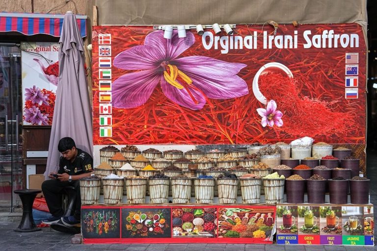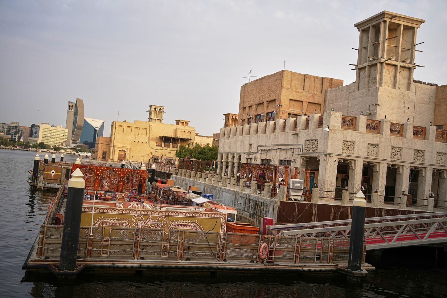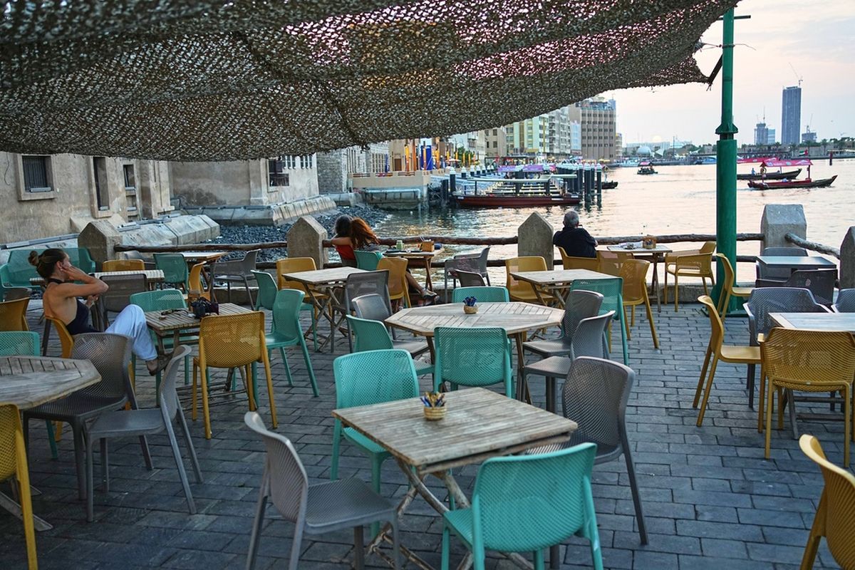 Ένας άντρας με λευκή κελεμπία φαίνεται να έχει αποκοιμηθεί πάνω σε ένα τραπέζι στην αγορά του Al Seef, δίπλα στη γειτονιά Al Fahidi, στις όχθες του Dubai Creek. Ξέρει πως τα τραπέζια του δεν θα γεμίσουν σύντομα και οι τουρίστες δεν θα κάνουν ουρές για να αγοράσουν κάποιον από τους χυμούς και τα παγωτά που υπόσχονται λίγη δροσιά, στις αφίσες πίσω του.