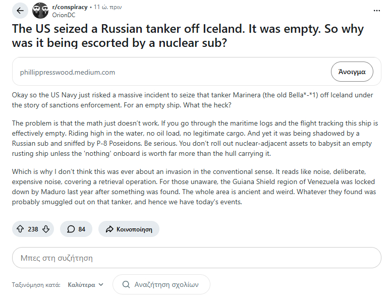 Τι κρύβεται πίσω από το δεξαμενόπλοιο Marinera; Το Reddit εχει τις απαντήσεις