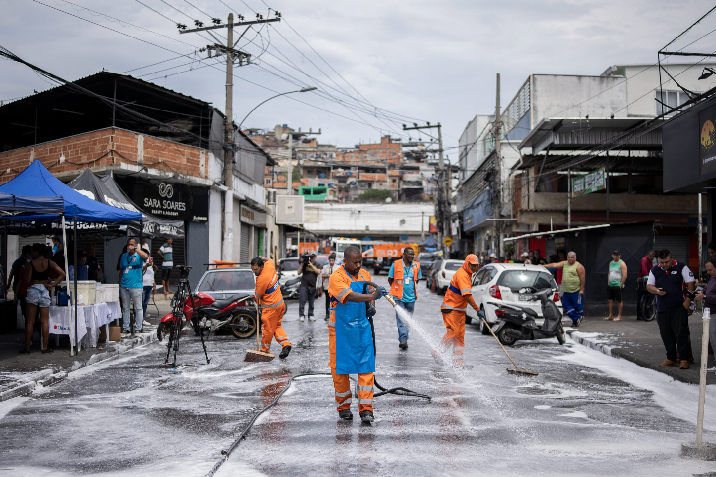 Η ιστορία: Δημοτικοί εργάτες καθαρίζουν το αίμα στην πλατεία Σάο Λούκας στο Ρίο ντε Τζανέιρο, έπειτα από τη μεγάλη αστυνομική επιχείρηση που εκτυλίχθηκε στις φαβέλες Complexo do Alemão και Penha, σκορπώντας τον θάνατο σε 112 άτομα, στην πλειοψηφία αφροβραζιλιάνοι.