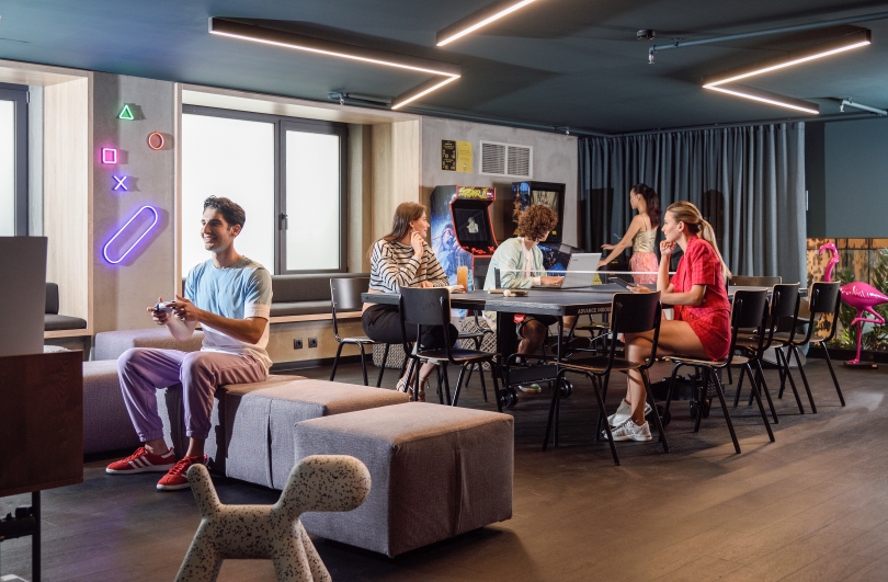 Κι όταν αποφασίσεις ότι ήρθε η ώρα να πατήσεις pause, επιστρέφεις σε έναν χώρο που ξέρει πώς να σε αποφορτίσει. Το festive σκηνικό είναι παρόν, αλλά διακριτικό, χωρίς υπερβολές. Το mezzanine με τη βιβλιοθήκη, τα arcade games και το PlayStation 5, για να θυμηθείς και πάλι το μικρό παιδί που κρύβεις μέσα σου, και το gym λειτουργεί σαν αστικό καταφύγιο: χαλαρώνεις, διαβάζεις, κινείσαι, αποσυνδέεσαι. Με τον δικό σου ρυθμό.