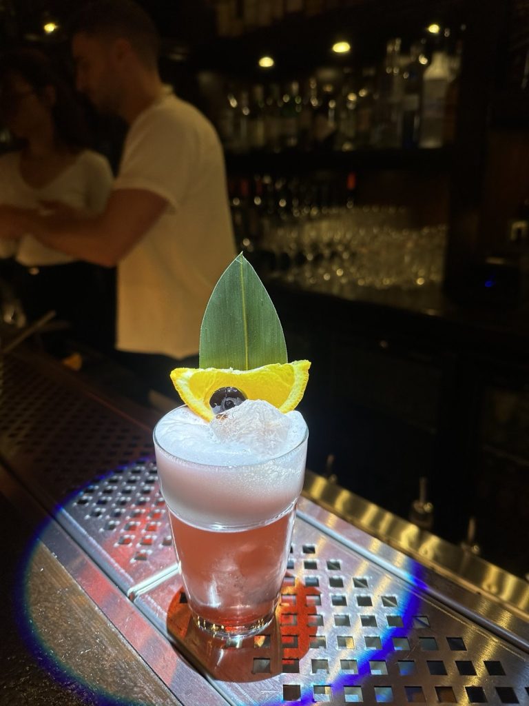 Εδώ, η συνταγή αποκτά ένα υπέροχο, σύγχρονο twist: το gin, ο ανανάς και η γρεναδίνη “δένουν” αριστουργηματικά με cherry yogurt, αντί για το παραδοσιακό λικέρ κεράσι, και μωβ βασιλικό (purple basil). Αυτός ο ανατρεπτικός συνδυασμός χαρίζει στο ποτό μια αναπάντεχα βελούδινη υφή και μια φρέσκια, βοτανική πολυπλοκότητα. Είναι το απόλυτο, δροσιστικό drink για να κλείσεις τη μέρα σου, απολαμβάνοντας την ανεπιτήδευτη, old-school ατμόσφαιρα αυτού του νέου στεκιού.
