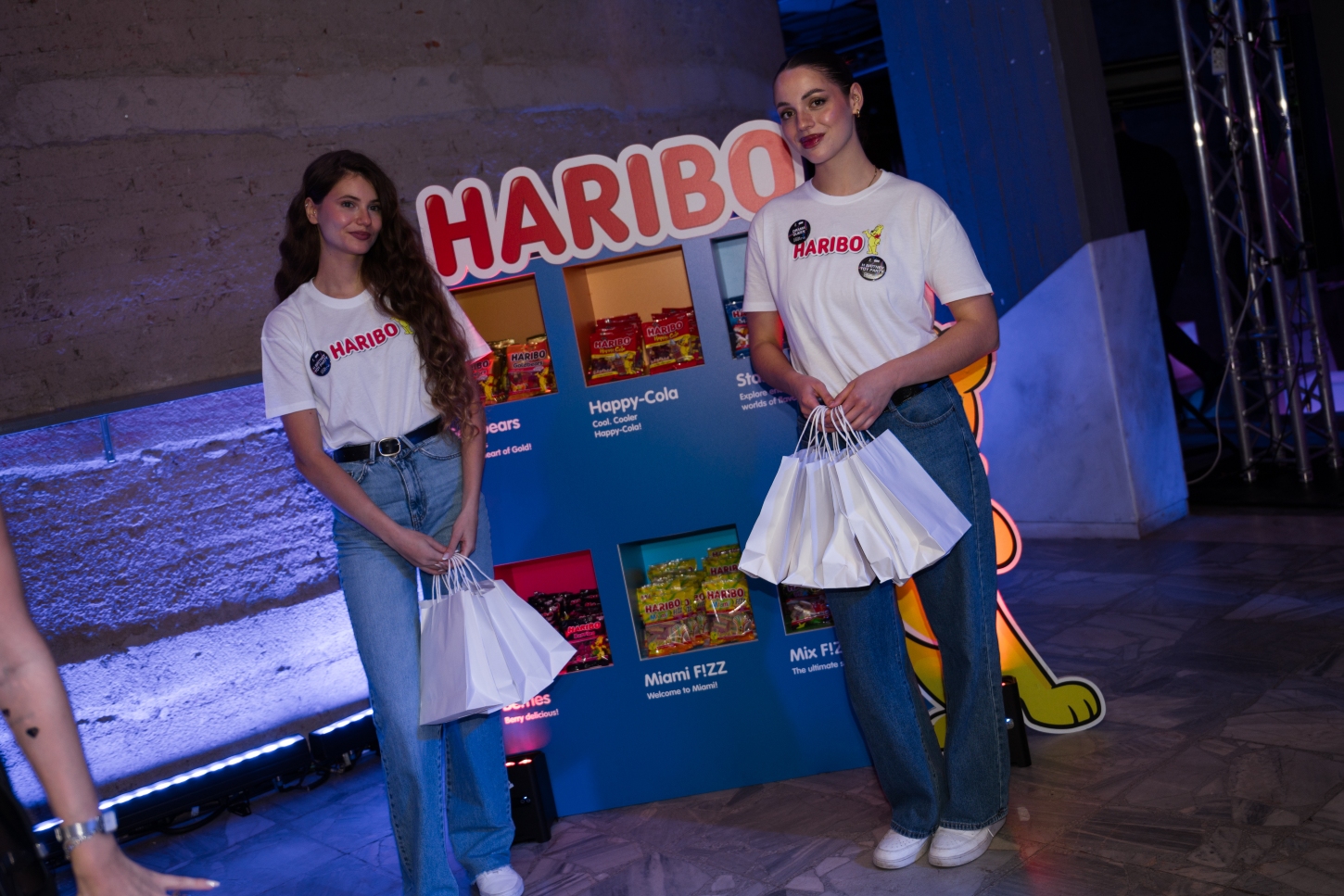 Τεράστιες ουρές όμως δεν σχηματίστηκαν μόνο στην μπάρα του Jack Daniel’s, αλλά και ακριβώς απέναντι στο corner της HARIBO, τόσο για selfies με τον Goldbear, που ήταν η μασκότ της βραδιάς, όσο και για τη γλυκιά -κυριολεκτικά- πινελιά της βραδιάς: τα bags με τα αγαπημένα ζελεδάκια Goldbears, Happy-Cola, Starmix, Berries, Miami Fizz και Mix Fizz, που έγιναν ανάρπαστα.
