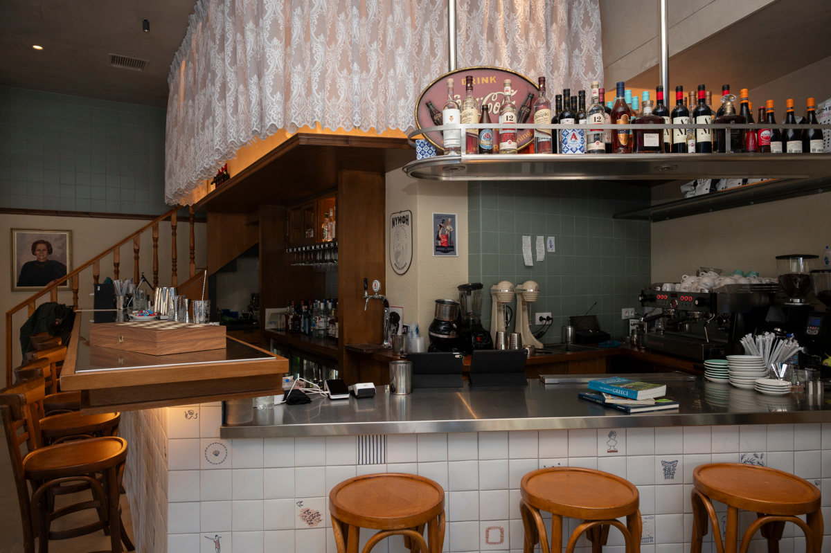 Αν ρωτάς για την ατμόσφαιρα και τη διακόσμηση, είναι ακριβώς όπως θα έπρεπε να είναι. Σεμεδάκια πάνω από το μπαρ, ξύλινη και πλαστική καρέκλα καφενείου, ένας μαρμάρινος νεροχύτης γεμάτος εσπεριδοειδή και μια ξύλινη μπάρα που όμως σε παραπέμπει στα παλιά. Μόλις μπήκα, ένιωσα αυτό που μου περιέγραψε λίγο αργότερα ο Μανώλης Λυκιαρδόπουλος, ότι ήθελαν να φέρουν στο σήμερα την αίσθηση, τη χαλαρότητα και την ατμόσφαιρα των παλιών ελληνικών καφενείων.