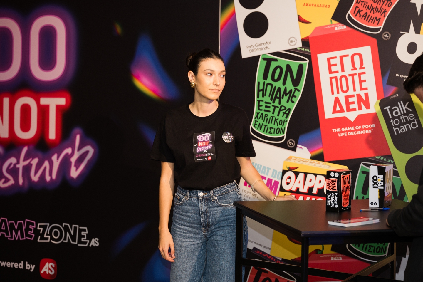 Η διασκέδαση της AS Company περίμενε τον κόσμο στο ειδικά διαμορφωμένο Do Not Disturb Room μέσα στο Ωδείο Αθηνών, με πολλά χρώματα και σειρά από ψηλά τραπέζια για παιχνίδι «στα όρθια» – ένα κανονικό playroom, με τον game master της Gamezone να μας βάζει ιδανικά στο κλίμα των καλύτερων party games της ελληνικής εταιρείας που δραστηριοποιείται στον χώρο απ’ το 1990.