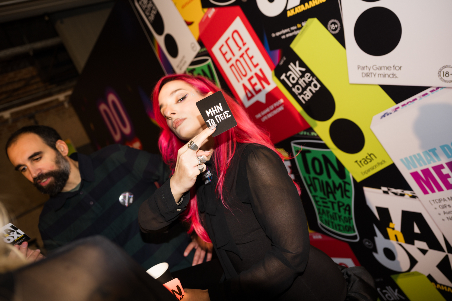 Είδαμε με έκπληξή όλο το πάρτι να περνάει από το Do Not Distrurb Room της AS Company, κάνοντας ένα διάλειμμα από τον χορό στο dancefloor. Οι παρέες δοκίμαζαν το ένα επιτραπέζιο μετά το επόμενο, όσο τα γέλια έφταναν πολλές φορές μέχρι έξω, τραβώντας την περιέργεια σε περισσότερο κόσμο. Καμία σχέση με αυτό που πολλοί πίστευαν για τα επιτραπέζια: με ή χωρίς τη βοήθεια του game master, το παιχνίδι ήταν υπόθεση μερικών λεπτών. Δεν είχες οδηγίες να διαβάσεις, δεν είχες στρατηγική να καταστρώσεις. Είχε μόνο εξομολογήσεις, αστεία challenges και πολύ χαβαλέ, όπως ακριβώς χρειάζεται ένα πάρτι ή μία μάζωξη φίλων.