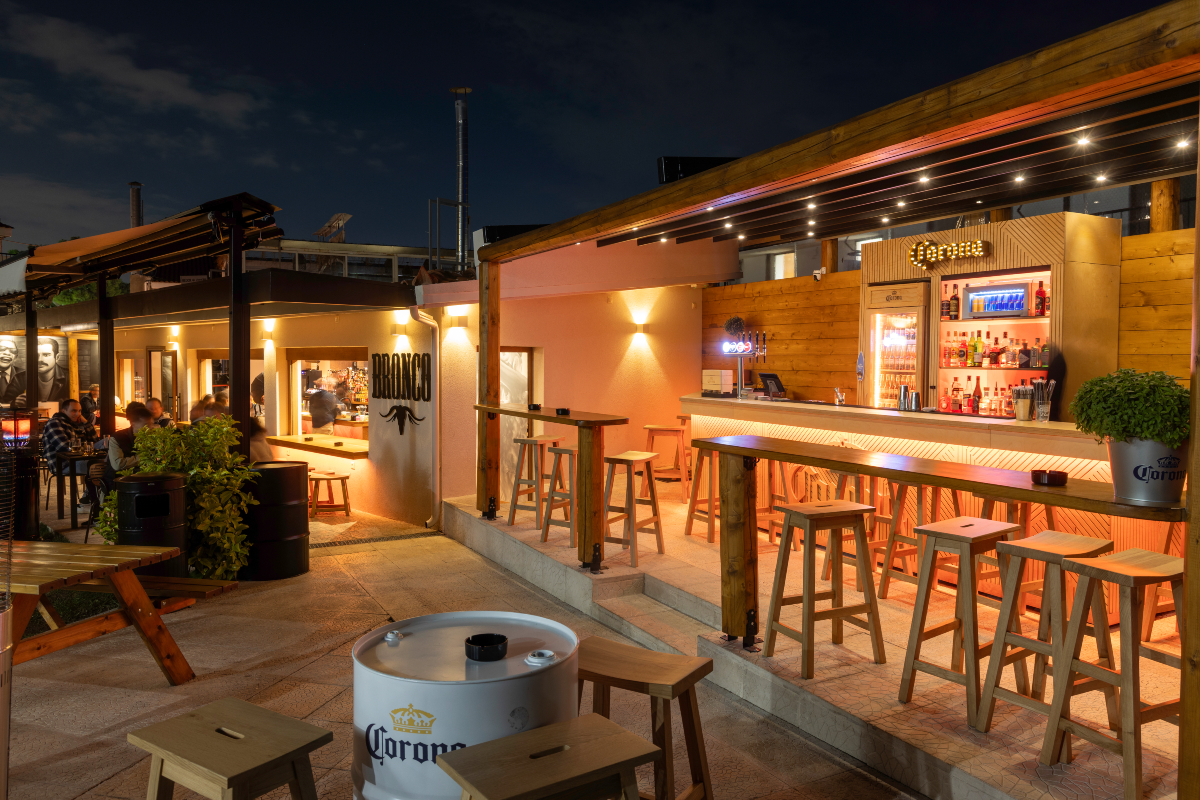 Η μπάρα του Bronco είναι το σημείο που αναπνέει η ψυχή του μαγαζιού. Εδώ, η ομάδα δημιουργεί τις δικές της εκδοχές στα cocktails, χρησιμοποιώντας τεχνικές όπως το clarification, και στήνει μια λίστα που ισορροπεί ανάμεσα στο κλασικό και το πειραγμένο: Clear Margarita, Porn Star Spritz με βανίλια, passion fruit και αφρώδες κρασί, αλλά και τα αγαπημένα old time classics, φτιαγμένα με φροντίδα και ακρίβεια. Για όσους προτιμούν κάτι πιο παρεϊστικο, τα Corona Beer Buckets, σε ειδικές τιμές, σε μεταφέρουν στις καλοκαιρινές διακοπές.