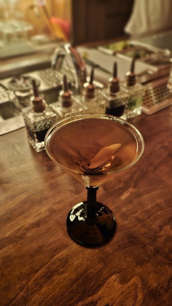 Εδώ θα δεις την αποθέωση της απλότητα του κλασικού. Το Manhattan τους είναι η απόδειξη αυτής της φιλοσοφίας: Bourbon, το εξαιρετικό Del Professore Vermouth di Torino και Angostura bitters. Τόσο απλό, τόσο σωστό. Είναι στιβαρό, αρωματικό και «καθαρό», το ιδανικό ποτό για να αράξεις στην μπάρα ακούγοντας παλιά ελληνικά κομμάτια και να νιώσεις ότι ο χρόνος σταμάτησε, ενώ απολαμβάνεις το ποτό που σου αξίζει.