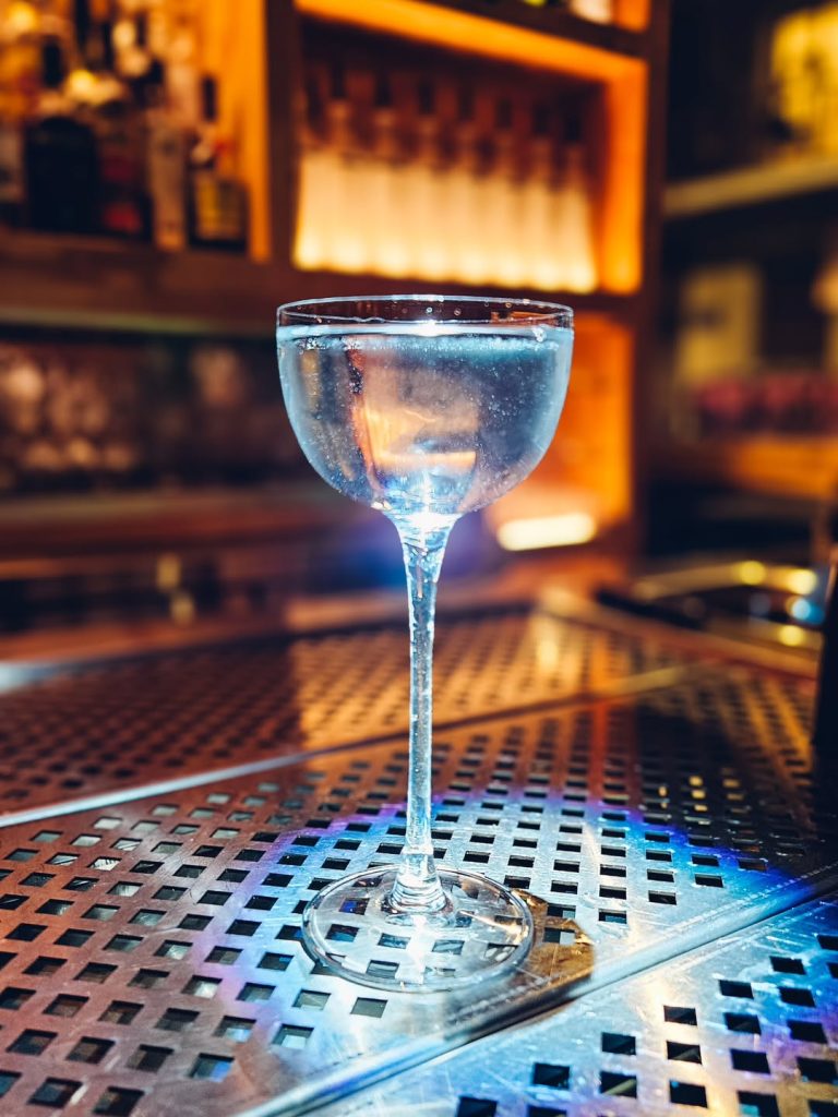 Πίσω από την μπάρα, η Γεωργία Γεωργακοπούλου έχει φτιάξει μια λίστα «διαμάντι», αλλά εσύ θα πας για το cocktail ορόσημο. Παράγγειλε το Dry Martini. Θα σου έρθει στο πιο συγκλονιστικό ποτήρι, ένα πραγματικό αντικείμενο τέχνης. Κράτησέ το, απόλαυσε την παγωμένη, καθαρή γεύση του και νιώσε λίγο πρωταγωνιστής στη δική σου ταινία.