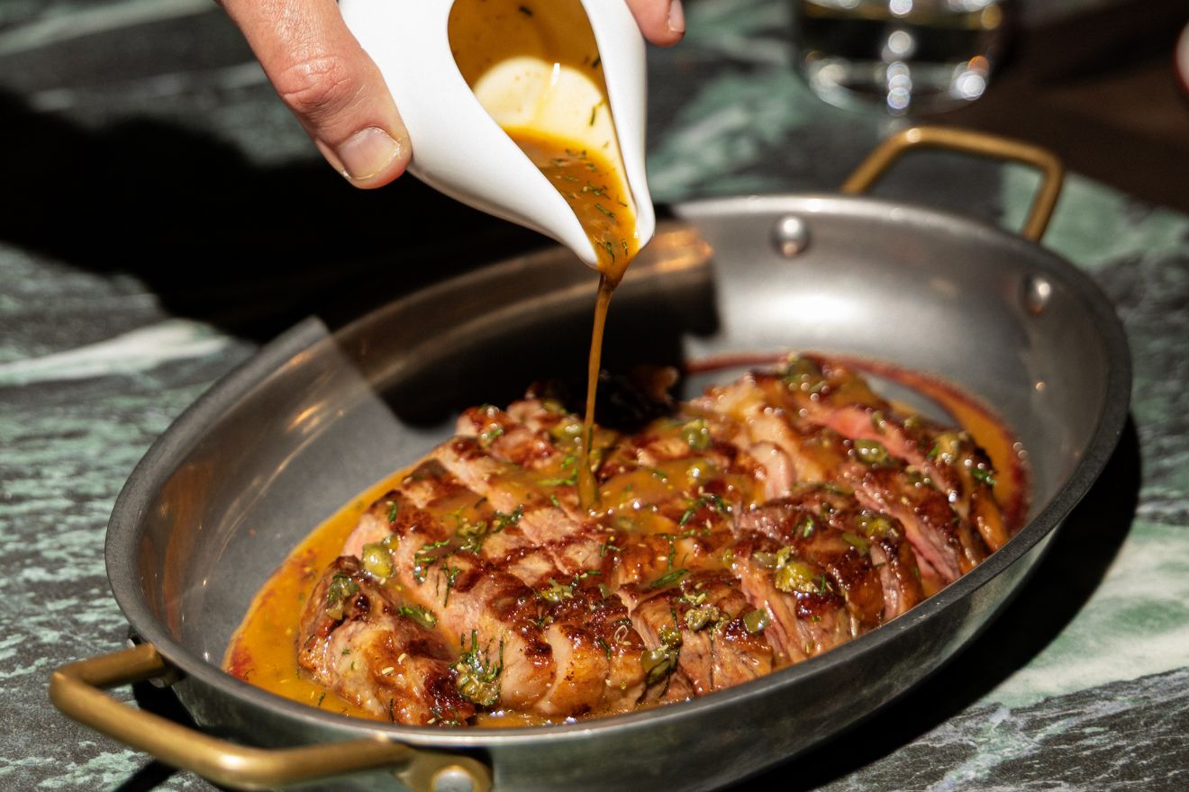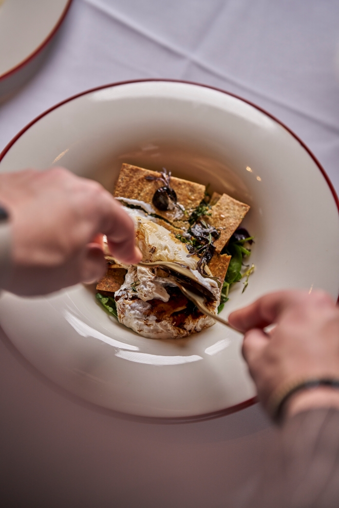 Από το ιδιαίτερο «Όταν το Ριζότο Παρμεζάνα Θέλησε Να Γίνει Caprese» μέχρι τις παπαρδέλες σε στιλ paella και τα εκλεκτά κυρίως πιάτα όπως το rib eye με βούτυρο Café de Paris, το αρνίσιο κότσι με jus καμένου βούτυρου & μελιού καστανιάς, κάθε πρότασή του αποτυπώνει τη φιλοσοφία του σύγχρονου comfort fine dining.