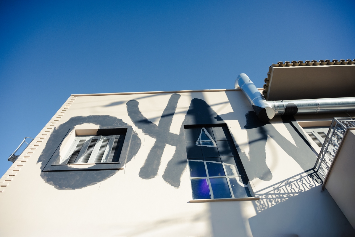 Ένα τεράστιο ΟΥΑΝ δεσπόζει στην πρόσοψη, κάνοντάς το άμεσα αναγνωρίσιμο σε όποιον περνά από τη λεωφόρο Αμφιθέας. Το έργο τραβά τα βλέμματα των περαστικών και γίνεται συχνά αντικείμενο φωτογράφισης. Η ιδέα ανήκει στις φίλες του μαγαζιού Ιωάννα και Νατάσσα, τις JoNat Architects, που υπογράφουν και όλο τον σχεδιασμό του χώρου.