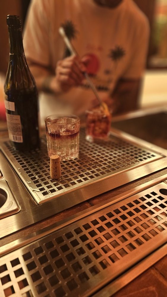Όσο περνάει η ώρα, ενσωματώνεται με τα υπόλοιπα υλικά και μεταμορφώνει το ποτό. Είναι ένα Sour που ταιριάζει απόλυτα με την audiophile ησυχία του μαγαζιού: διακριτικό, χωρίς υπερβολές, ακριβώς όπως πρέπει για να το απολαύσεις.