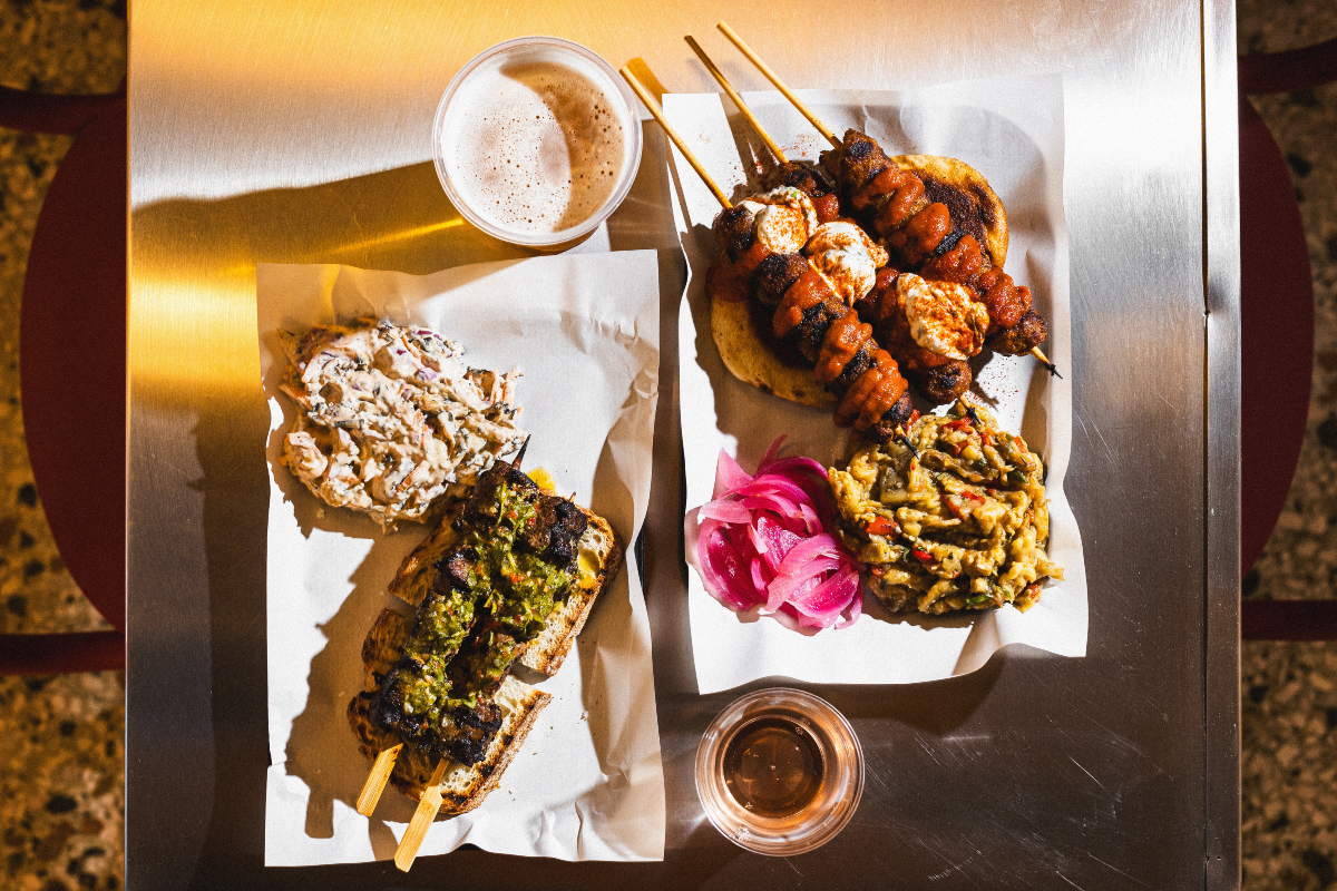 Το χοιρινό καλαμάκι πατάει πιο παραδοσιακά, με ρίγανη, ανθό αλατιού, τζατζίκι από φρέσκο παντζάρι και προζυμένιο ψωμί στη σχάρα. Ξεχωρίζει και το συκώτι μοσχαρίσιο γάλακτος, με coleslaw από ψητό λάχανο και chia, chimichurri και ψωμί στη σχάρα.