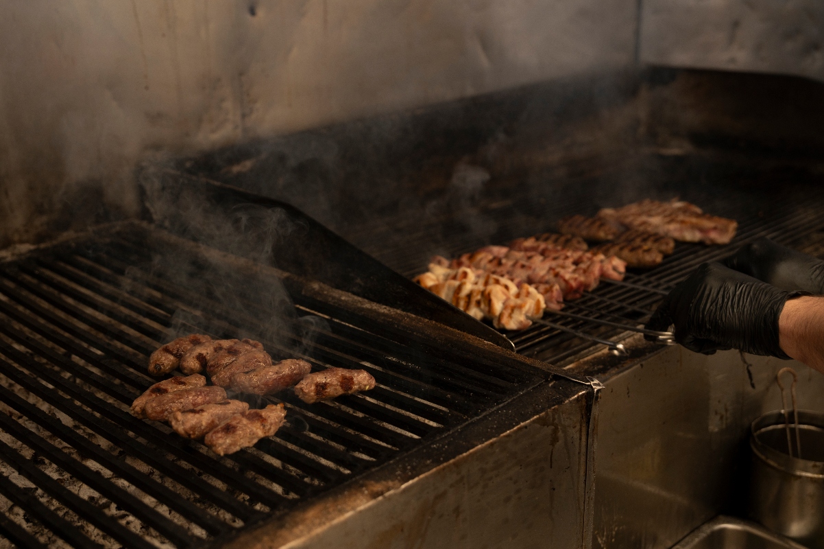 Τα καλύτερα κρέατα προετοιμάζονται και κόβονται όπως πρέπει, προετοιμάζονται και ψήνονται όπως τους αρμόζει και έρχονται κατευθείαν στο τραπέζι. Λουκάνικα και μπριζολάκια μαύρου χοίρου, ταρτάρ και λουκάνικα από κρέας αγελάδας της ελληνικής στεπικής φυλής της Κατερίνης, ψαρονέφρι με κρέας που προέρχεται από μία μικρή φάρμα στη Νάξο και παϊδάκια από αρνιά που τρέφονται με άγρια χόρτα και μυρωδικά.