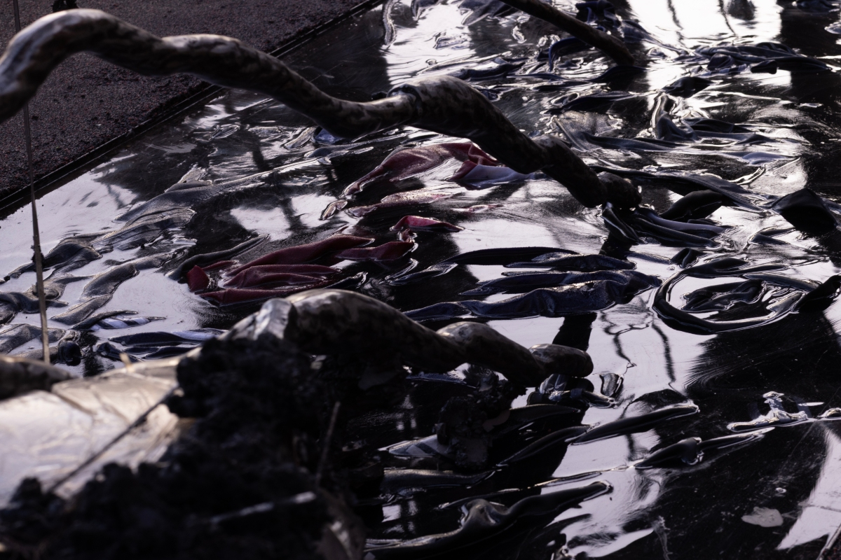 Στην προκειμένη περίπτωση, βλέπουμε ένα σύμπλεγμα από διάφορα βιομηχανικά υλικά (κυρίως σίδερο και μαγνήτες) απλωμένο σε μια διαμορφωμένη πλατφόρμα, σαν να «ρουφάει» ενέργεια με τα χυτεμένα «πλοκάμια» του από μια μαύρη λίμνη ρητίνης.