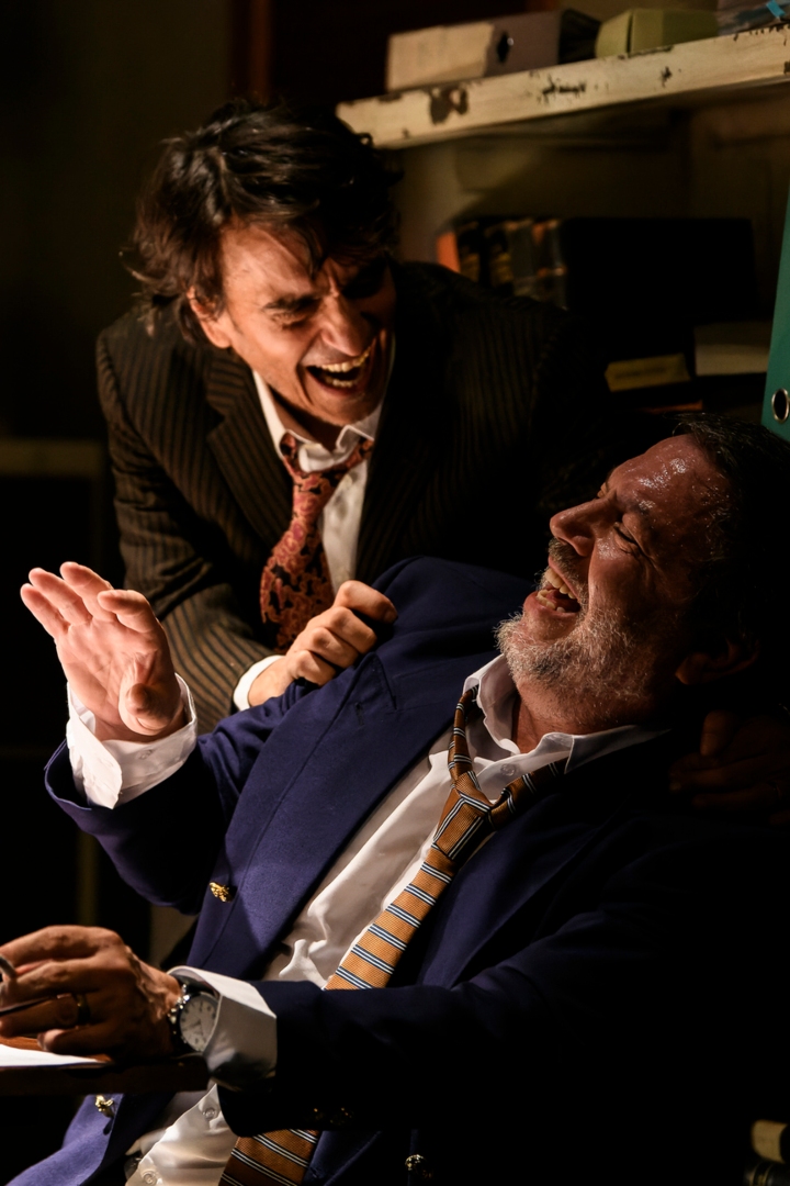 Έτσι, το 2017 παρουσιάσαμε τον Εθνικό Ελληνορώσων. Επειδή κάπως την είχαμε ψιλιαστεί ότι ταιριάζουν τα γούστα μας αποφασίσαμε να το γράψουμε μαζί και το κάναμε. Με τον Αντώνη φτιάξαμε την ιστορία κομμάτι-κομμάτι και εκείνος έγραψε τους διαλόγους, ενώ διαπραγματευόμασταν το έργο συνεχώς μαζί μέχρι και μέσα στις πρόβες.