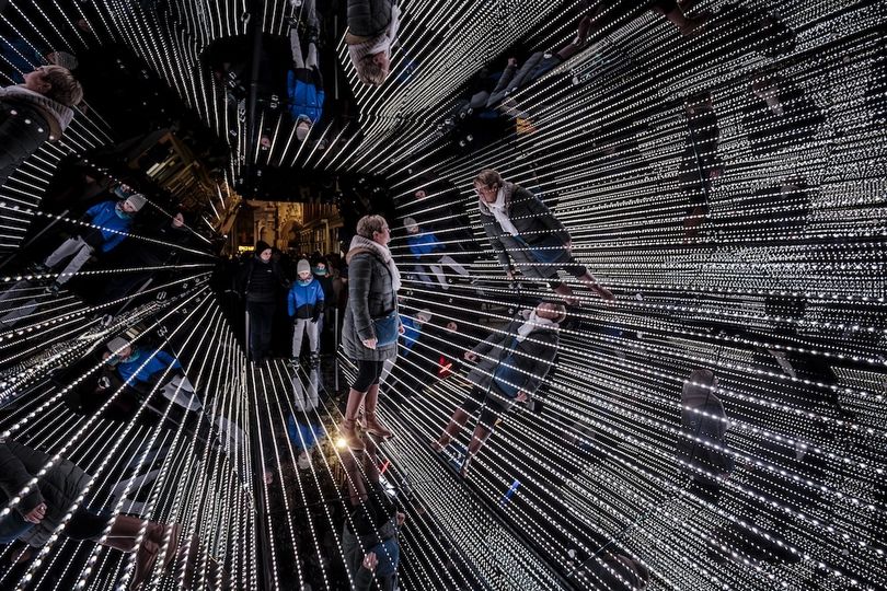 Κάτι επίσης που θα ξεχωρίσει στο φετινό ADAF είναι το έργο Passengers του Guillaume Marmin. Μια επιβλητική outdoor εγκατάσταση στην αυλή του μηχανουργείου, όπου ο επισκέπτης καλείται να διασχίσει μια δομή που στο εσωτερικό της κρύβει έναν τεράστιο καλειδοσκοπικό κόσμο από καθρέφτες και διαδραστικά φώτα, βλέποντας το είδωλό του να πολλαπλασιάζεται άπειρα μέσα σε ένα τοπίο ψηφίδων που αλλάζει διαρκώς, συνοδευόμενο από ένα εντυπωσιακό ηχητικό περιβάλλον. Μιλά ακριβώς για αυτό που μας απασχολεί: τη μεταμόρφωση, τον χρόνο, και τη σχέση μας με το σώμα και την ταυτότητά μας σε έναν κόσμο που αλλάζει ραγδαία.
