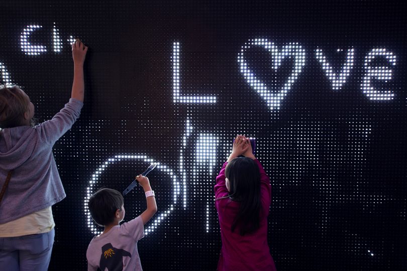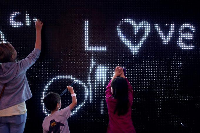 Θα δούμε μια Τεχνόπολη μεταμορφωμένη, που πραγματικά δεν ξέρω τι να πρωτοδιαλέξω. Από την εγκατάσταση στον αύλειο χώρο του Μηχανουργείου, το Waterlight Graffiti του Γάλλου Antonin Fourneau, ένα έργο που έρχεται για πρώτη φορά στην Ελλάδα στην οποία το κοινό ζωντανεύει ένα μεγάλο τοίχο κυριολεκτικά με νερό. Το κάθε pixel δηλαδή φωτίζει μόλις μια σταγόνα νερό το ενεργοποιήσει. Πρόκειται για μια τεράστια επιφάνεια χιλιάδων LED που ανάβουν στο άγγιγμα του νερού. Μια εγκατάσταση – εργαλείο έκφρασης προσβάσιμο σε όλες τις ηλικίες.