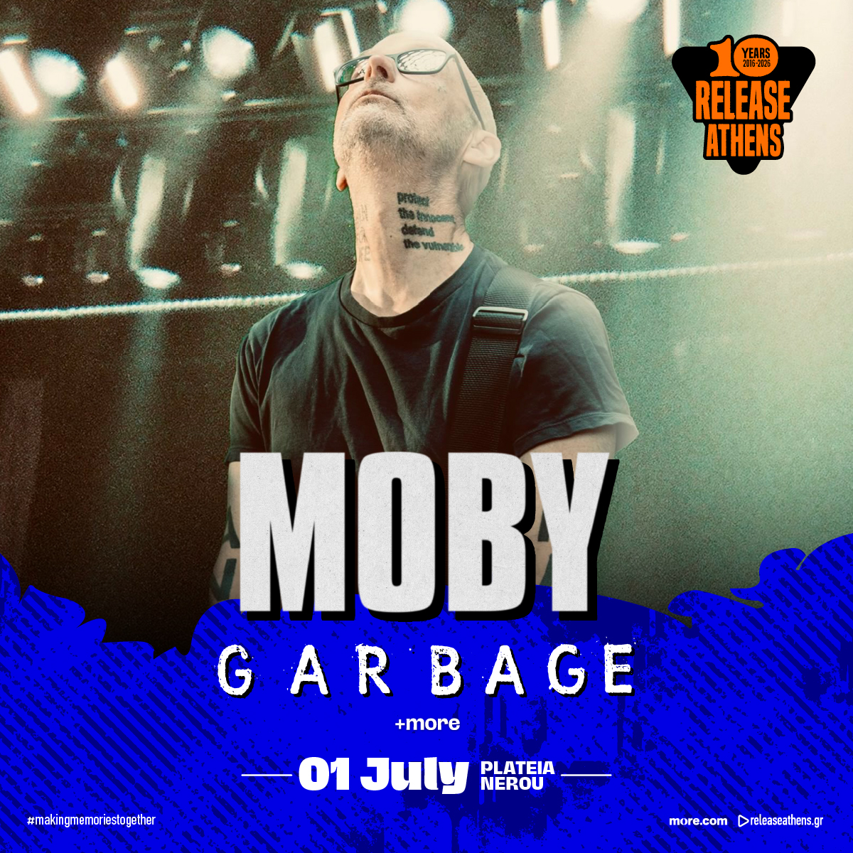 Το Release Athens 2026 υποδέχεται τον Moby, την Τετάρτη 1η Ιουλίου, στην Πλατεία Νερού. Ο Αμερικανός superstar, μια από τις πιο σημαντικές και δημοφιλείς προσωπικότητες της ηλεκτρονικής μουσικής (και όχι μόνο), επιστρέφει δυναμικά στις περιοδείες και την παγκόσμια μουσική σκηνή, υποσχόμενος ένα show γεμάτο με τις μεγαλύτερες επιτυχίες της τεράστιας καριέρας του.