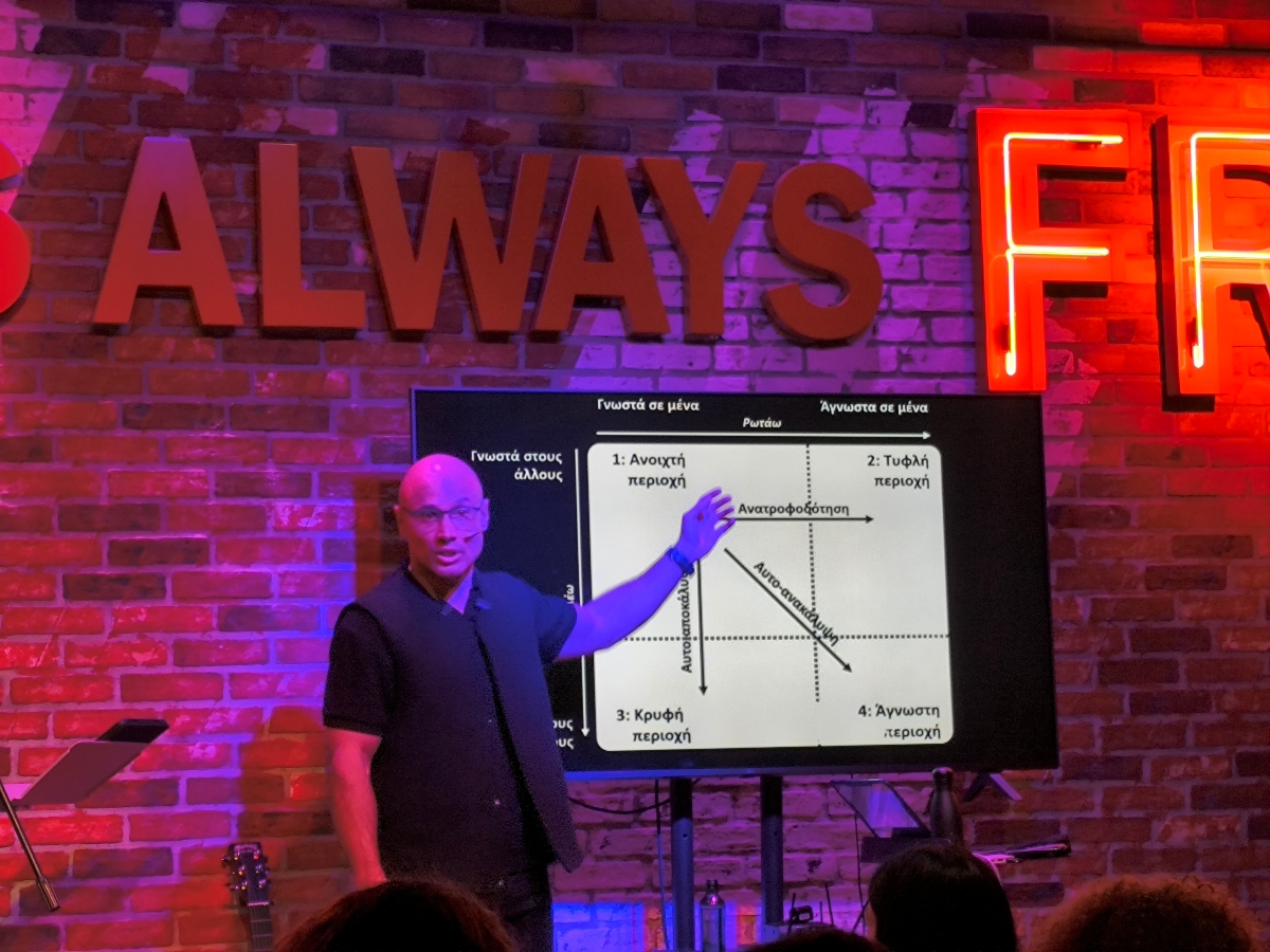 Ήταν την περασμένη Παρασκευή, όταν έπειτα από καιρό ανέβηκα στο loft του TGI Fridays στην Καπνικαρέα, προσπαθώντας να ξεκολλήσω το μυαλό μου από το προφανές λογοπαίγνιο μεταξύ ημέρας και χώρου. Είχα ολοκληρώσει μόλις τη συνεδρία της εβδομάδας και μέσα στα επόμενα λεπτά θα άρχιζε ένας ακόμη γύρος αναμέτρησης με ψυχολόγο, αυτή τη φορά όχι μόνος σε κάποιο ιδιωτικό ιατρείο, αλλά μαζί με αγνώστους σε ένα κατάμεστο μαγαζί όπου κανείς δεν γνώριζε τι ακριβώς θα συνέβαινε.