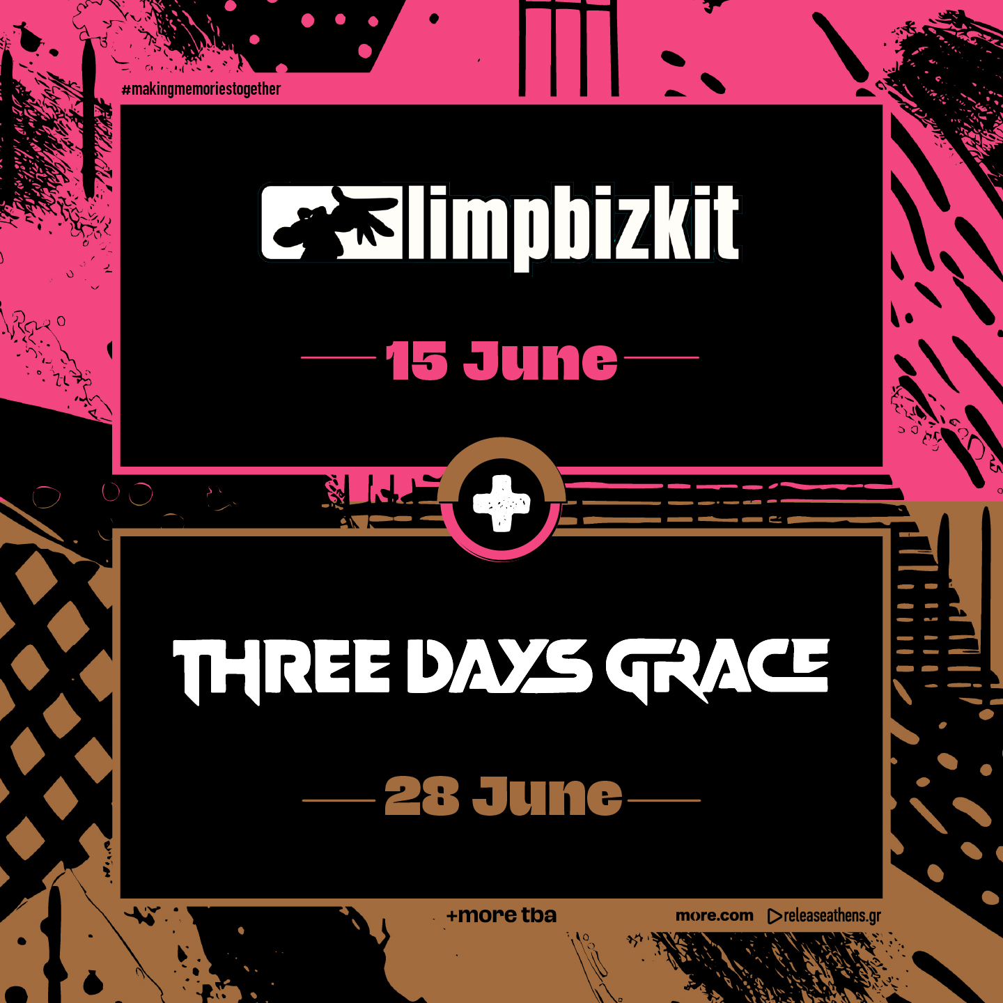 Το Release Athens 2026 υποδέχεται τους Three Days Grace, την Κυριακή 28 Ιουνίου, στην Πλατεία Νερού. Οι Καναδοί, μια από τις υπερδυνάμεις του σύγχρονου alternative metal/rock, επισκέπτονται για πρώτη φορά την Ελλάδα, έτοιμοι να προσφέρουν ένα από τα πιο εκρηκτικά και συναισθηματικά φορτισμένα shows του ερχόμενου καλοκαιριού.
