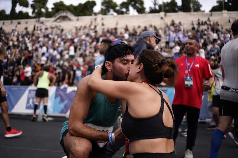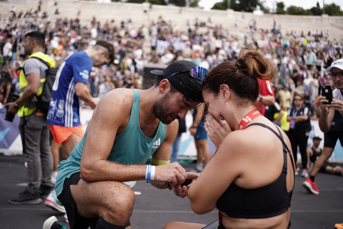 Δεν έλειψαν φυσικά απ’ τη φετινή διοργάνωση οι ευφάνταστες στολές μέσα στο πλήθος των δρομέων, όπως σκουφάκια πόκεμον και περικεφαλαίες. Αλλά, καμία δεν κατάφερε να κερδίσει τόσο την προσοχή (και τη δημοσιότητα) όσο το γλυκύτατο τόλμημα ενός δρομέα να επιλέξει τον Αυθεντικό Μαραθώνιο για να κάνει πρόταση γάμου στην αγαπημένη του. Αμέσως μετά τον τερματισμό, μέσα σε κλίμα απόλυτης συγκίνησης και χειροκροτήματος. Σίγουρη επιτυχία.