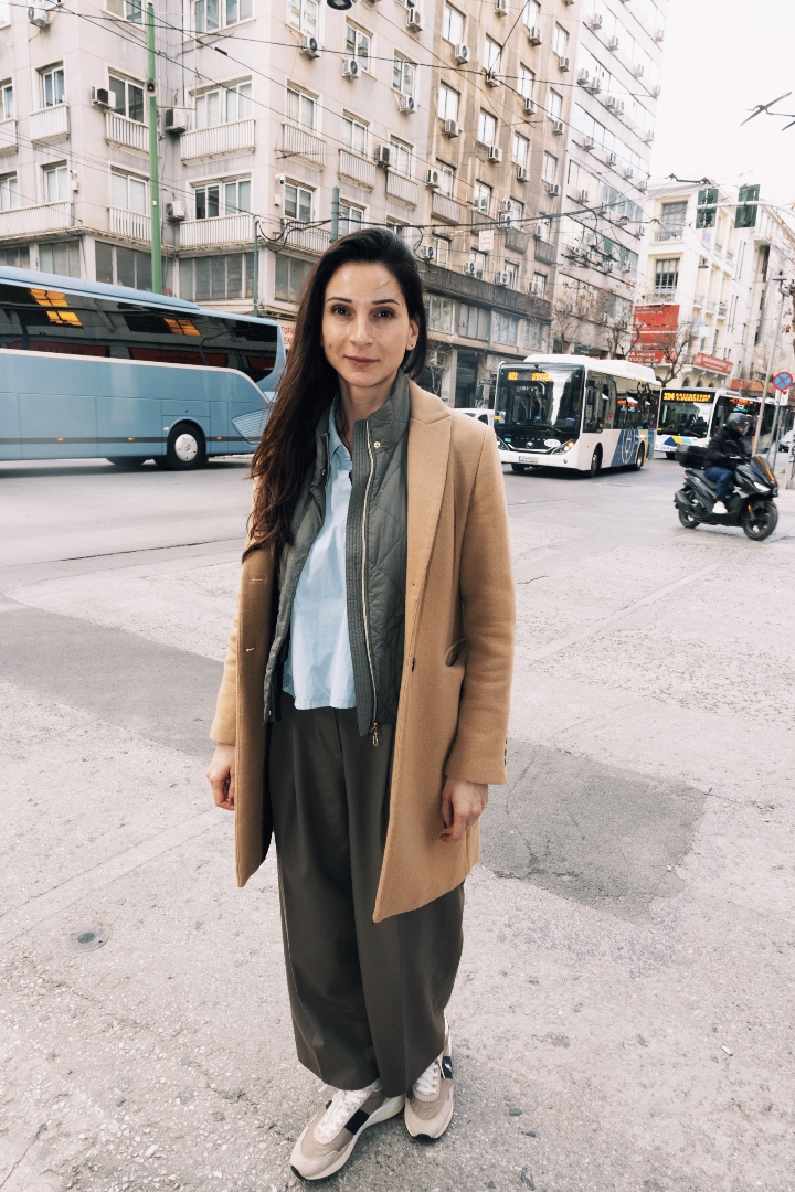 Η Ivana, μια γλυκύτατη μαμά από τη Σερβία, βρίσκεται στην Αθήνα με την κόρη της. Θέλει να νιώθει άνετα με τα ρούχα της και αυτό φαίνεται. Το παλτό της ξεχωρίζει: πρακτικό, ζεστό, με χαρακτήρα.