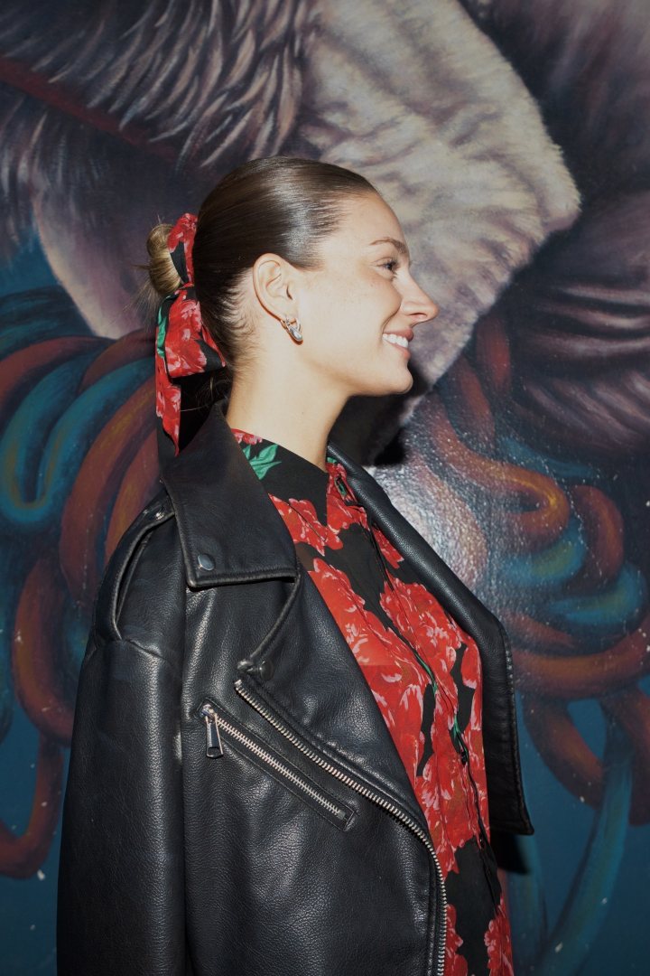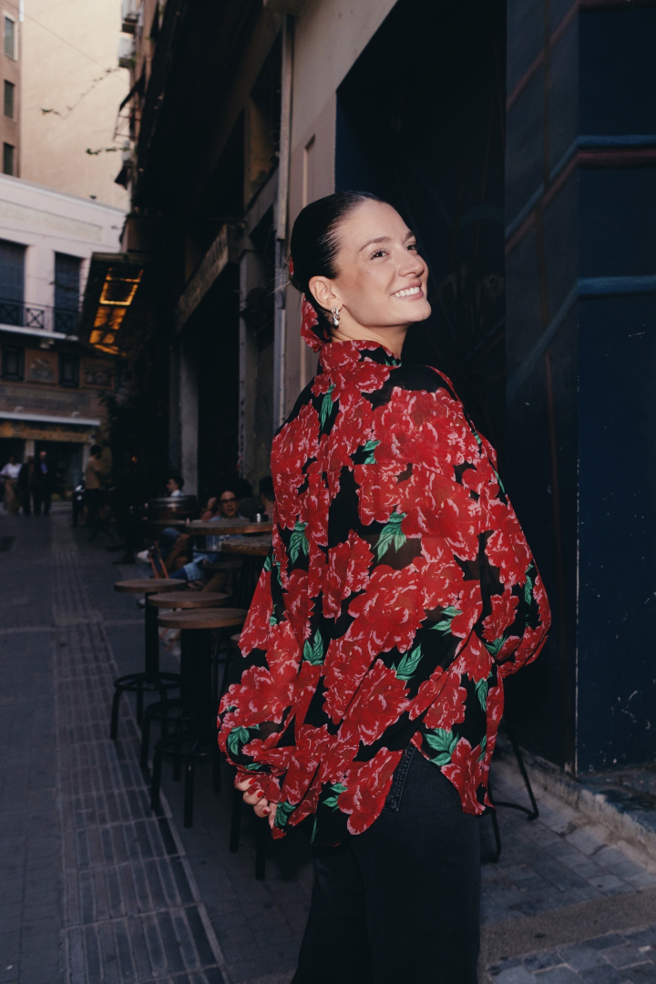 Η Ελισάβετ, 27 ετών, ξεχώριζε με το φλοράλ πουκάμισο Vassia Kostara, το οποίο συνδύασε ευρηματικά χρησιμοποιώντας τη ζώνη του ως αξεσουάρ για τα μαλλιά.