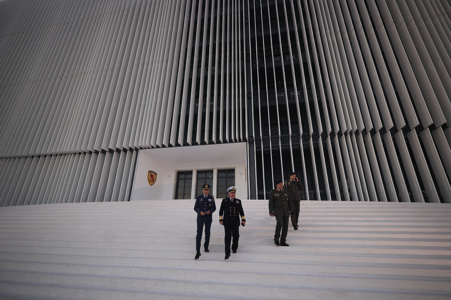 Σαν μία πελώρια λευκή «κουρτίνα» από κάθετες μεταλλικές δοκούς, η καινούργια βιοκλιματική και αισθητικά μοντέρνα πρόσοψη που υπογράφει ο σπουδαίος Κώστας Βαρώτσος για την έδρα του Υπουργείου Εθνικής Αμύνης αποτελεί το νέο «αξιοθέατο» της λεωφόρου Μεσογείων, όπως θα συμφωνήσουν όσοι οδηγοί τη διασχίζουν καθημερινά και έχουν παρακολουθήσει ένα προς ένα τα στάδια του έργου, κολλημένοι στην κίνηση.