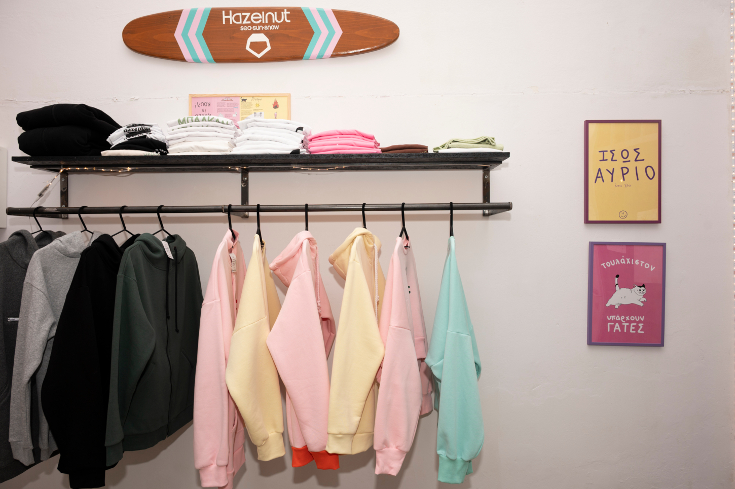 Το Hazelnut δεν είναι απλώς ένα κατάστημα ρούχων. Είναι ένας χώρος δημιουργίας και επικοινωνίας, που ενισχύει την αίσθηση της κοινότητας και της γειτονιάς. Από τα posters στους τοίχους, που όπως λένε, «είναι πάντα καθρέφτης της ψυχολογικής μας κατάστασης», μέχρι τη φετινή συλλογή με τίτλο «Γκουντ Ντει», όλα έχουν μια προσωπική, ανθρώπινη πινελιά.