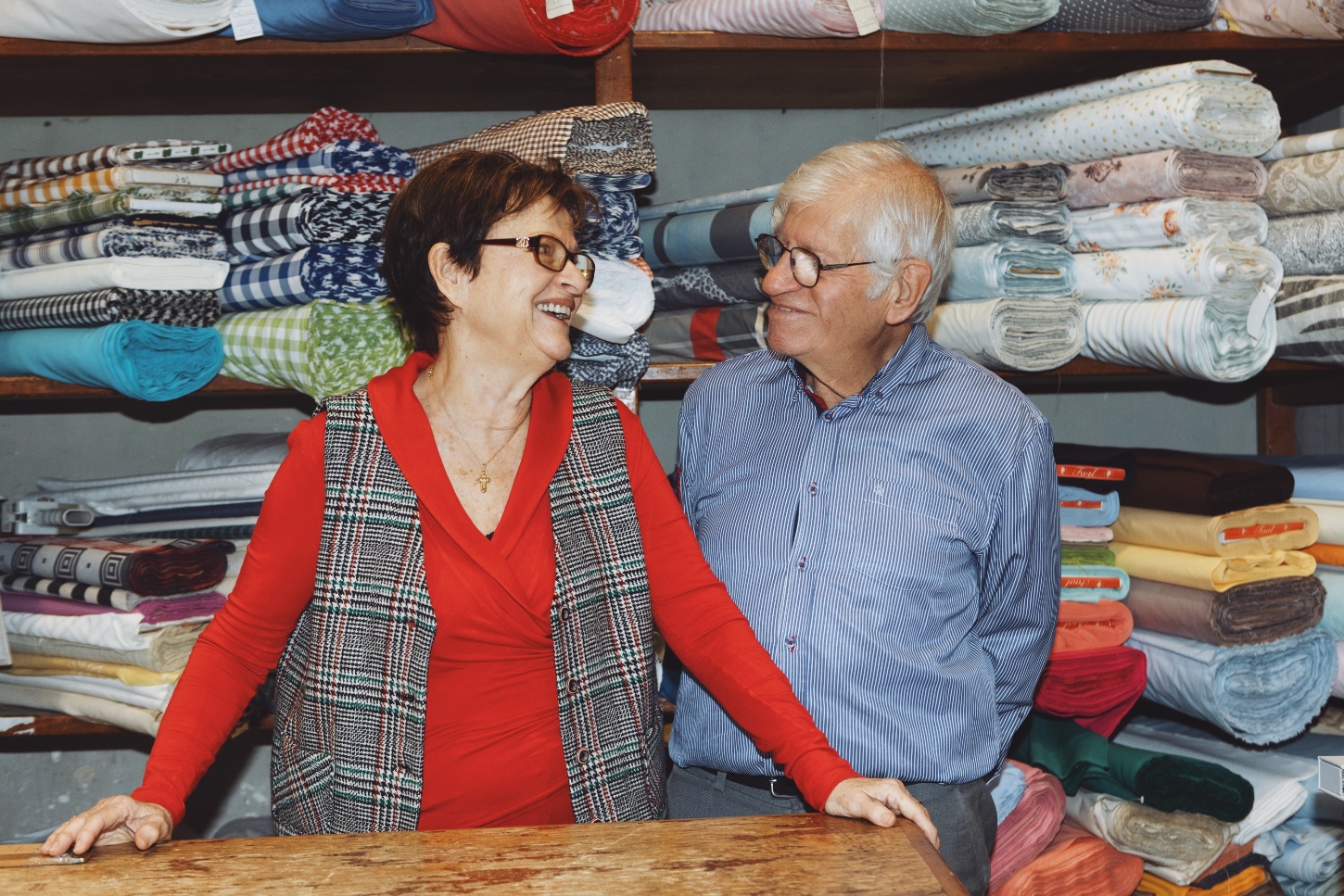 Τα χρόνια πέρασαν, οι γενιές άλλαξαν, αλλά το ύφασμα έμεινε πάντα στο κέντρο της ζωής τους. «Όλη η γειτονιά μας ήταν μαγαζιά, έβγαινες στο πεζοδρόμιο και έλεγες δέκα καλημέρες. Τώρα βγαίνεις και λες μία ή δύο».