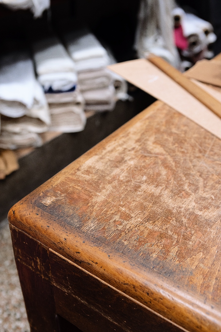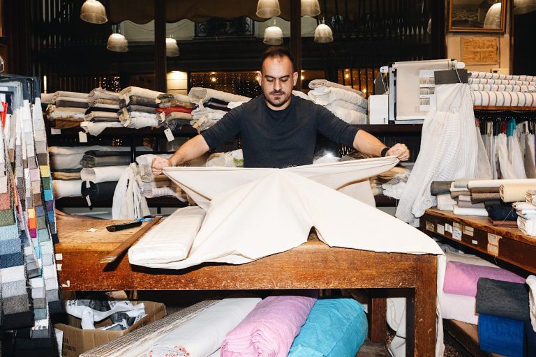 Όσο συζητάμε, ο Κυριάκος Ελμαλόγλου χαιρετά γνωστούς και φίλους που δράττονται της ευκαιρίας να ανταλλάξουν κουβέντες. Καθόμαστε πίσω από τον ξύλινο πάγκο που είναι γεμάτος φθορές κι ελπίζω να παραμείνει ο ίδιος. Κοιτάζω γύρω μου. Κάθε ράφι, κάθε πτυχή ενός παλιού υφάσματος, είναι μια μνήμη. Κανείς από εμάς δεν βγαίνει κερδισμένος στη νέα συνθήκη της πόλης. Χωρίς τις μικρές επιχειρήσεις χάνεται μια ολόκληρη αλυσίδα.