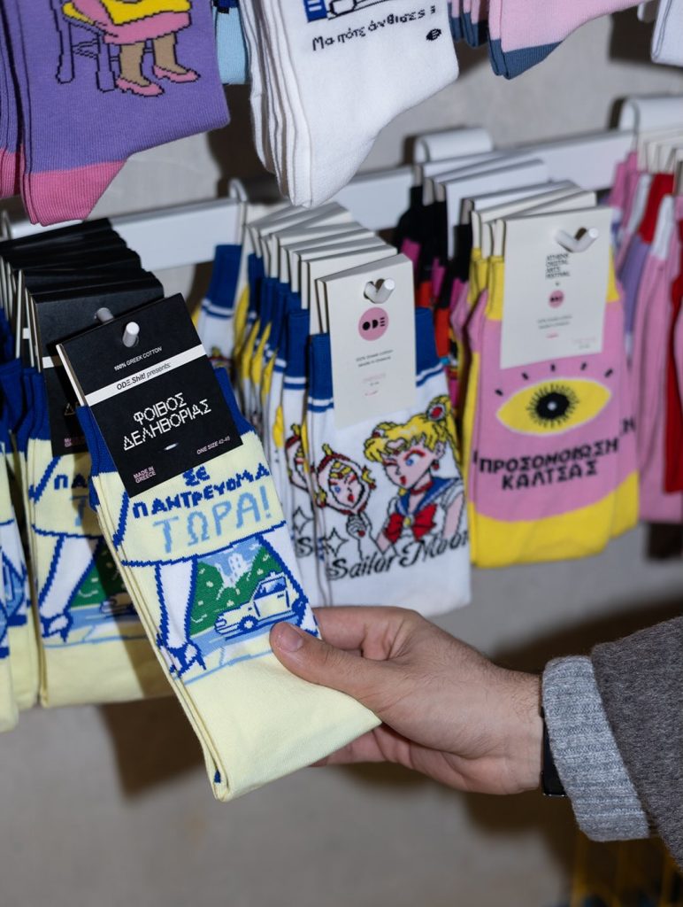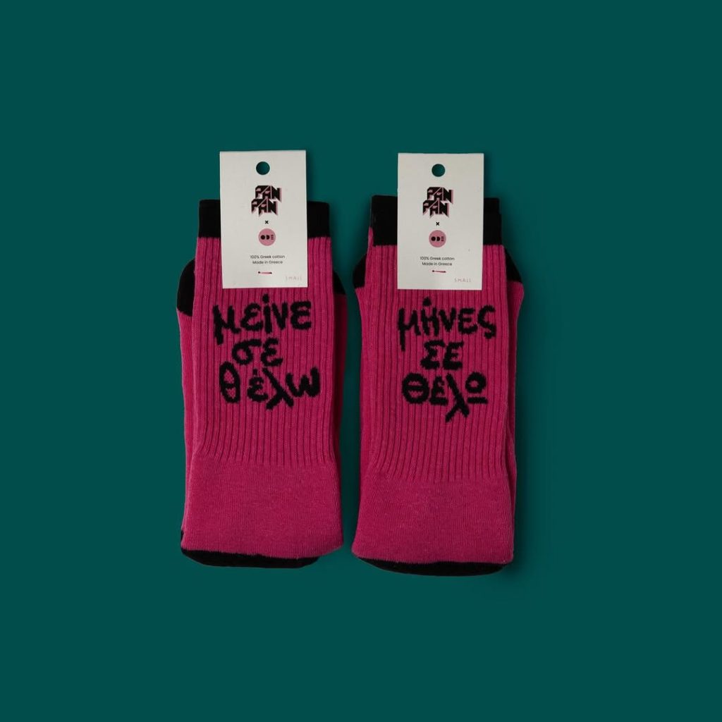 Με στίχους από τραγούδια του Φοίβου Δεληβοριά, της Νεφέλης Φασούλη και πολλών άλλων, τυπωμένους σε κάλτσες που ξεπροβάλλουν κάτω από τα μπατζάκια των Αθηναίων, το Ode to Socks έχει στήσει μια απρόσμενη γέφυρα ανάμεσα στη μόδα και την εγχώρια indie μουσική σκηνή, δίνοντας νέο νόημα στο merch και στη σχέση καλλιτέχνη–κοινού.