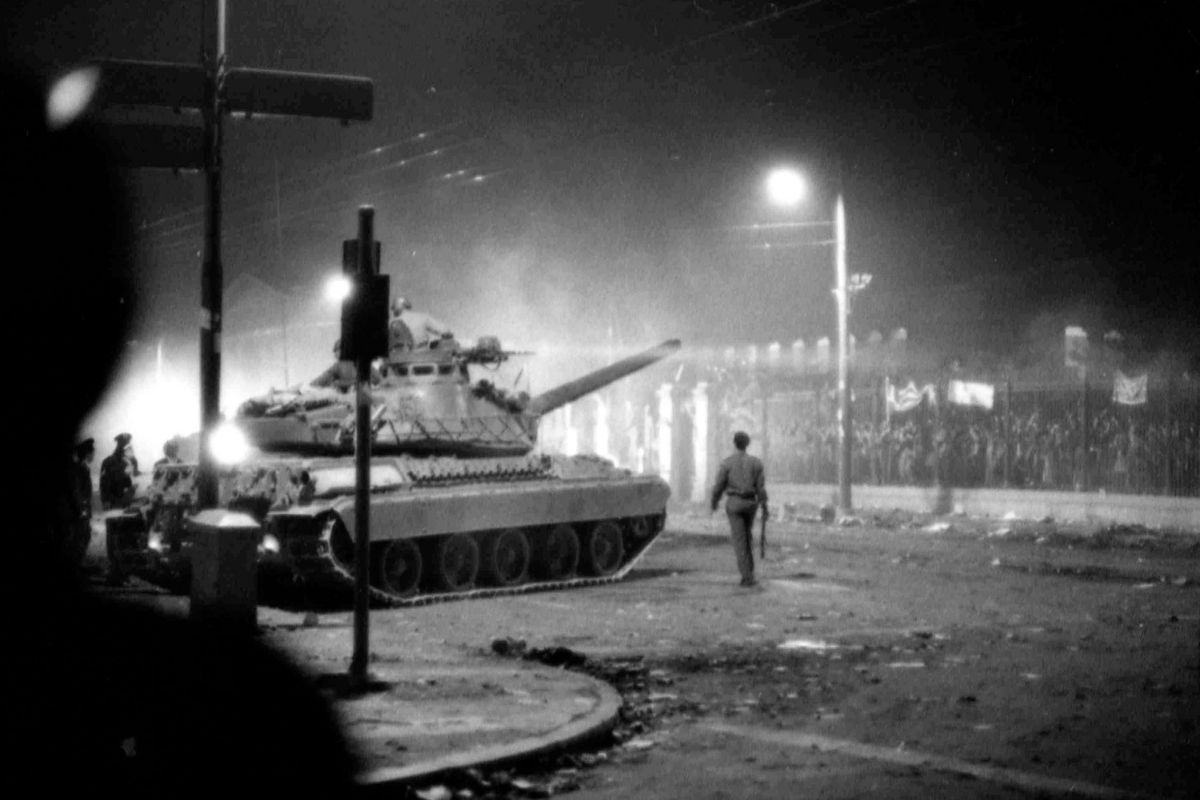 Όταν εμφανίστηκαν οι στρατιωτικοί και τα τανκς, υπήρξε διαπραγμάτευση για να λήξει ομαλά το θέμα, να φύγουμε ειρηνικά από εκεί. Η πρόθεση όμως των χωροφυλάκων δεν ήταν η ίδια· ήθελαν να μας μαζέψουν όλους. Δεν θα μας άφηναν να βγούμε έτσι έξω. Το τανκ ήταν με το κανόνι στραμμένο προς το Πολυτεχνείο. Πήρε εντολή και όρμησε, ρίχνοντας την πύλη κάτω.