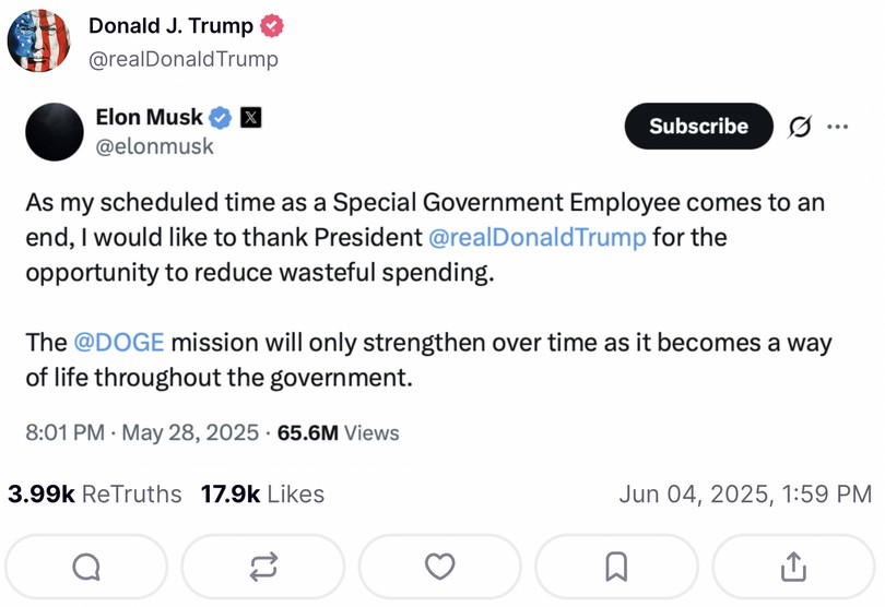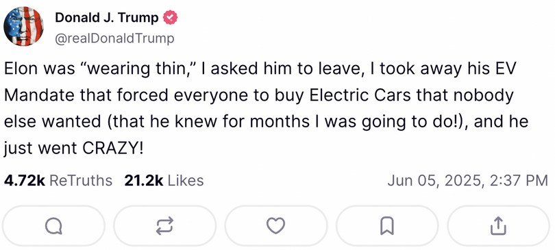 Ο Elon Musk αποχωρεί από την κυβέρνηση Trump, όμως αυτό που αρχικά φαινόταν σαν «βελούδινο διαζύγιο» καταλήγει σε μία διένεξη που αποκτά μεγάλες διαστάσεις και οδηγεί τους μέχρι πρότινος φίλους και συνεργάτες να λύνουν τις διαφορές τους με αναρτήσεις στα social media. Εκατέρωθεν επικρίσεις, χαρακτηρισμοί και αλληλοκατηγορίες πέφτουν βροχή και χαρίζουν λίγο ακόμα περιεχόμενο που δεν είχαμε καθόλου ανάγκη.