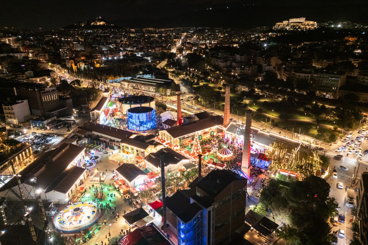 Έως τις 6 Ιανουαρίου 2026, η Τεχνόπολη Δήμου Αθηναίων μεταμορφώνεται ξανά στη Φωτεινή Πολιτεία του Άι Βασίλη