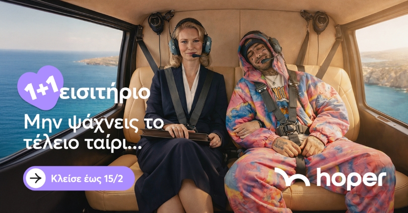Από 06/02 έως 15/02/2026, η hoper προσφέρει 1+1 δωρεάν εισιτήριο σε όλες τις τακτικές πτήσεις της στην Ελλάδα.