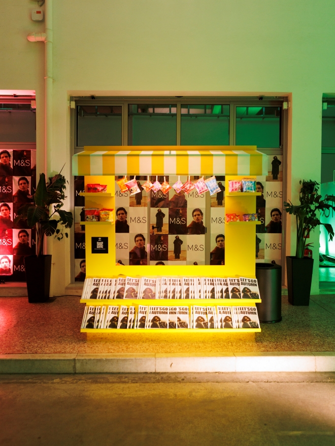 Το “Window Display” ζωντάνεψε τη γνωστή εμπειρία βιτρίνας του brand μέσα από ένα εντυπωσιακό installation, ενώ το “Newspaper Kiosk”, εμπνευσμένο από το κλασικό ελληνικό περίπτερο, φιλοξενούσε fashion editorials, περιοδικά και M&S snacks, συνδέοντας τη μόδα με την κουλτούρα της πόλης.