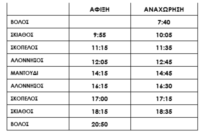 Βόλος – Σκιάθος – Σκόπελος – Αλόννησος – Μαντούδι Ευβοίας (και επιστροφή).
