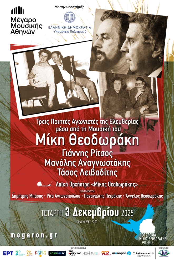 Προπώληση εισιτηρίων: Τρεις ποιητές αγωνιστές της ελευθερίας Λαϊκή ορχήστρα «Μίκης Θεοδωράκης» – Μέγαρο Μουσικής Αθηνών