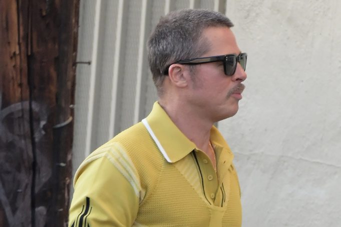 Δερμάτινα καπέλα σε στυλ panama, χρυσά κοσμήματα και το layering στα πιο παλιομοδίτικά του: πολύχρωμο ριγέ πουκάμισο πάνω από φανελάκι κάτω από προβιά για τον Brad Pitt που μεταμορφώθηκε στιλιστικά και υποκριτικά στα χέρια του Βρετανού σκηνοθέτη.