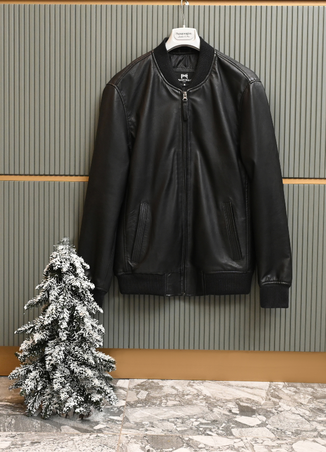Μαύρο δερμάτινο bomber jacket, Papageorgiou Leather & Fur Fashion, Mediterranean Cosmos.