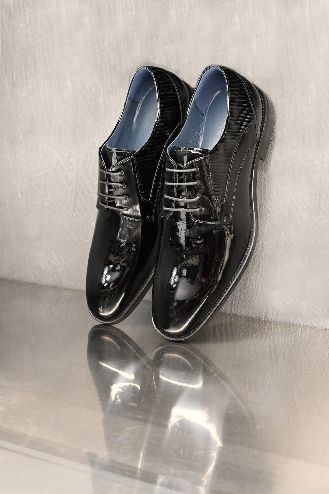 Μαύρα δερμάτινα δετά παπούτσια λουστρίνι. Renato Garini, Tsakiris Mallas, Mediterranean Cosmos.