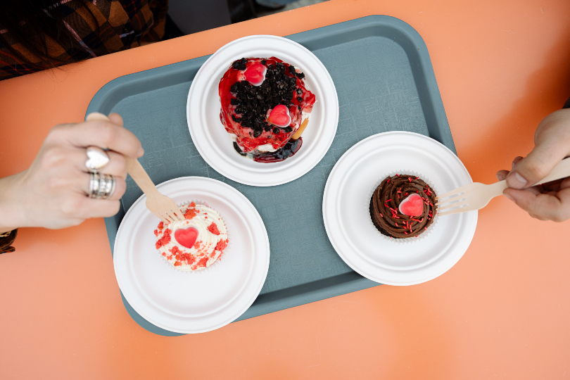 Βρεθήκαμε λοιπόν στο Cinnabon για να πιούμε καφέ, μα κυρίως για να δοκιμάσουμε τα εμπνευσμένα από την Ημέρα των Ερωτευμένων cupcakes και ρολά κανέλας. Ο πιο γλυκός -κυριολεκτικά- τρόπος για να κλείσει η βόλτα μας.