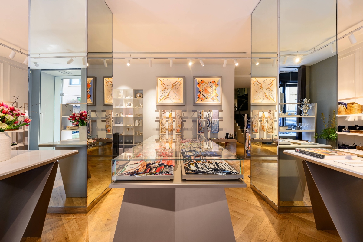 Το flagship store εκτείνεται σε πέντε επίπεδα, φιλοξενώντας τις συλλογές γυναικείων και ανδρικών ενδυμάτων, παπουτσιών, τσαντών, φουλαριών και ειδών σπιτιού.