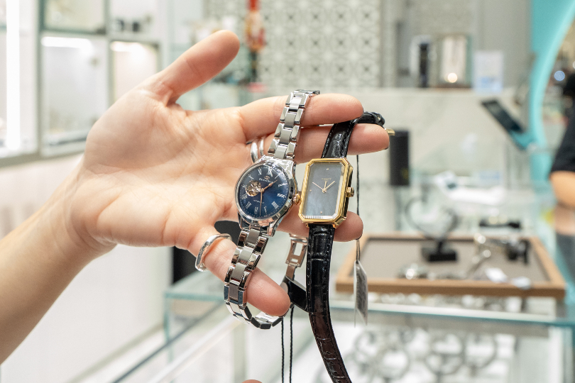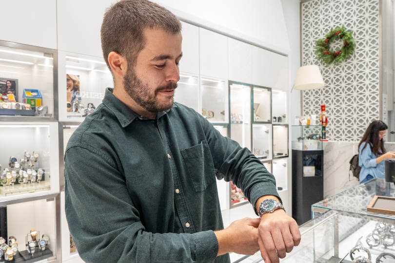 Το shopping μας συνεχίστηκε με ένα αξεσουάρ, που δεν είχαμε ούτε εγώ, ούτε ο Άγγελος, για την ακρίβεια, είχαμε πολλά χρόνια να φορέσουμε στον καρπό μας, ε και τώρα, λίγο πριν τις γιορτές είπαμε να το κάνουμε δώρο στον εαυτό μας: ένα ρολόι από το OROLOI.gr. Αφού δοκιμάσαμε αρκετά σχέδια, καταλήξαμε και οι δύο σε μπρασελέ, που OK μπορεί να είναι κάπως Boomer επιλογή, αλλά όπως υπογραμμίσαμε στην αρχή, στο The Mall Athens, είμαστε όλη μία γενιά, η Generation M.